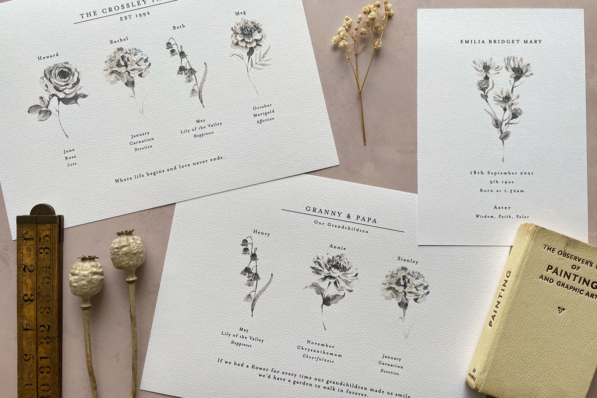 A sentimental print for your home or a thoughtful gift for a loved one. Kester Studio has created a range of personalised family prints that you will feel proud to display in your home using your families birth flowers and the symbolic meaning attached to them.